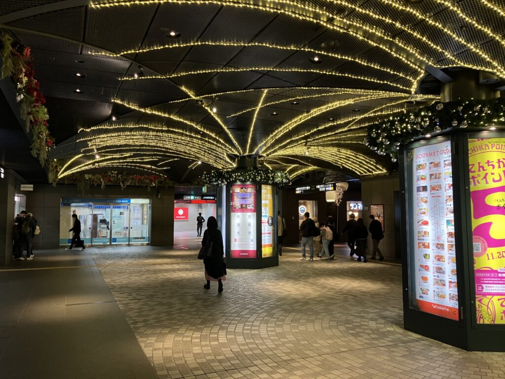 石畳仕様の天神地下街はインバウンドに人気。恒例のイルミが灯るこの時期、年度の後半戦へ。